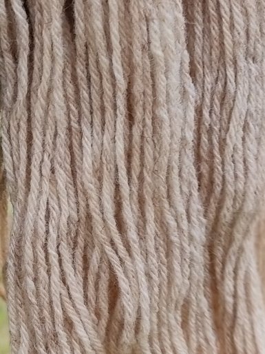 Couleur écrue naturelle, blanc crème avec des touches rousses caractéristiques du Roux Ardennais : 90% Roux Ardennais & 10% Est à laine Mérinos